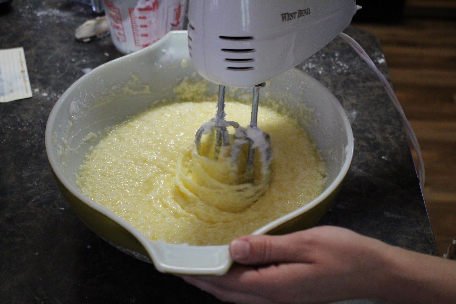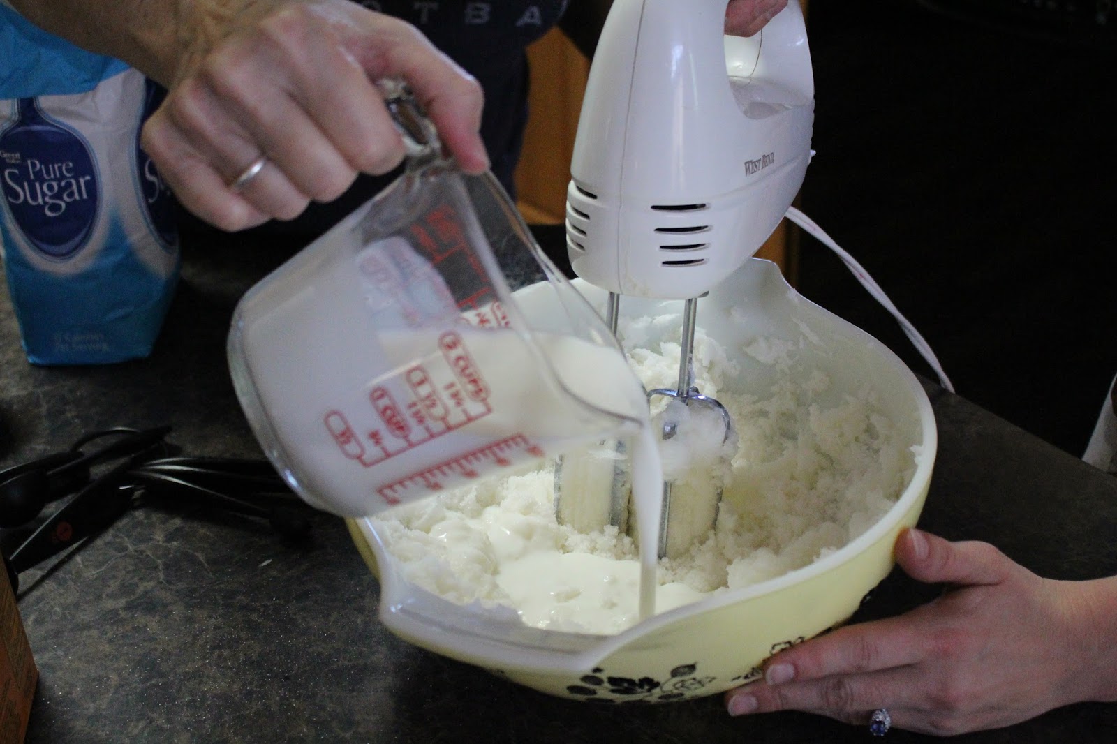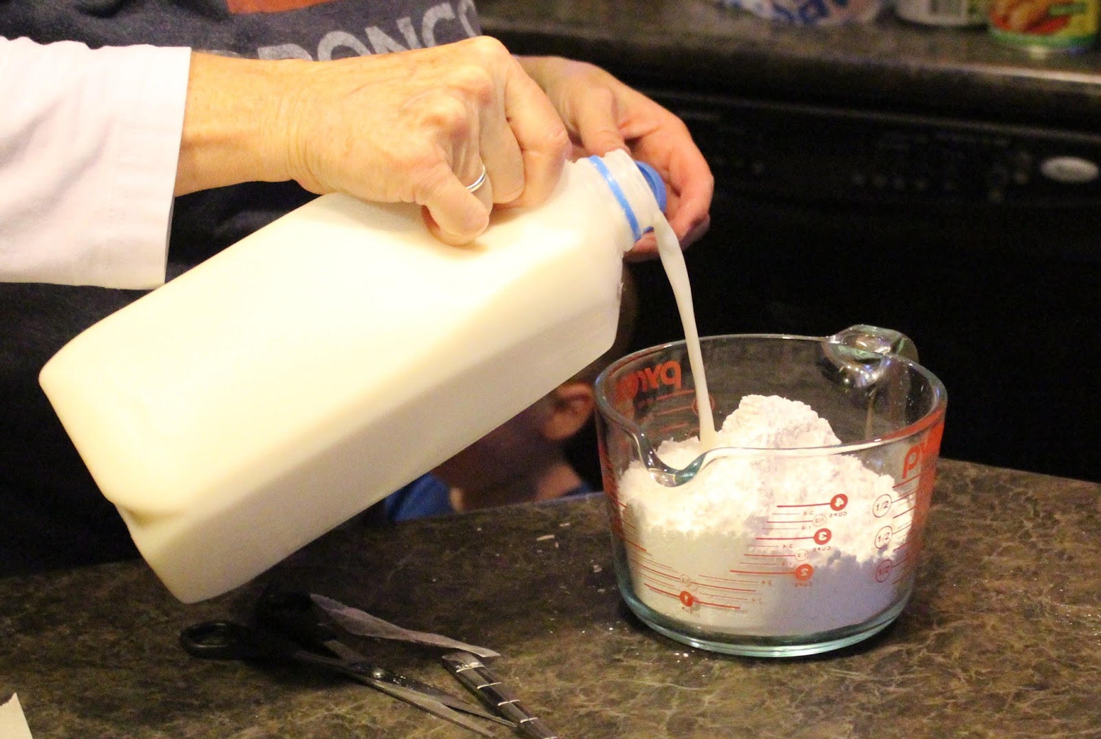 Add 6 cups of flour to the wet mixture one cup at a time.