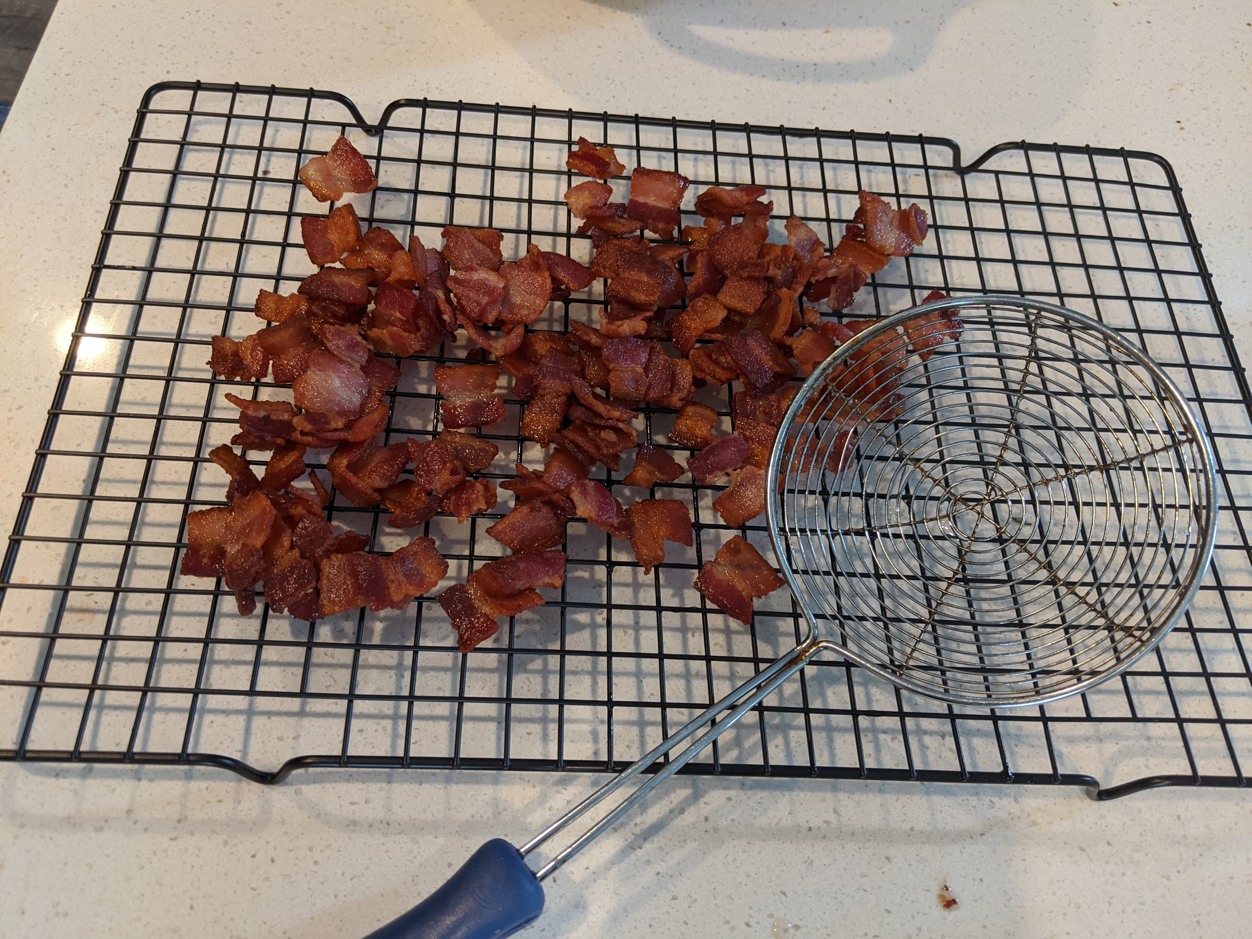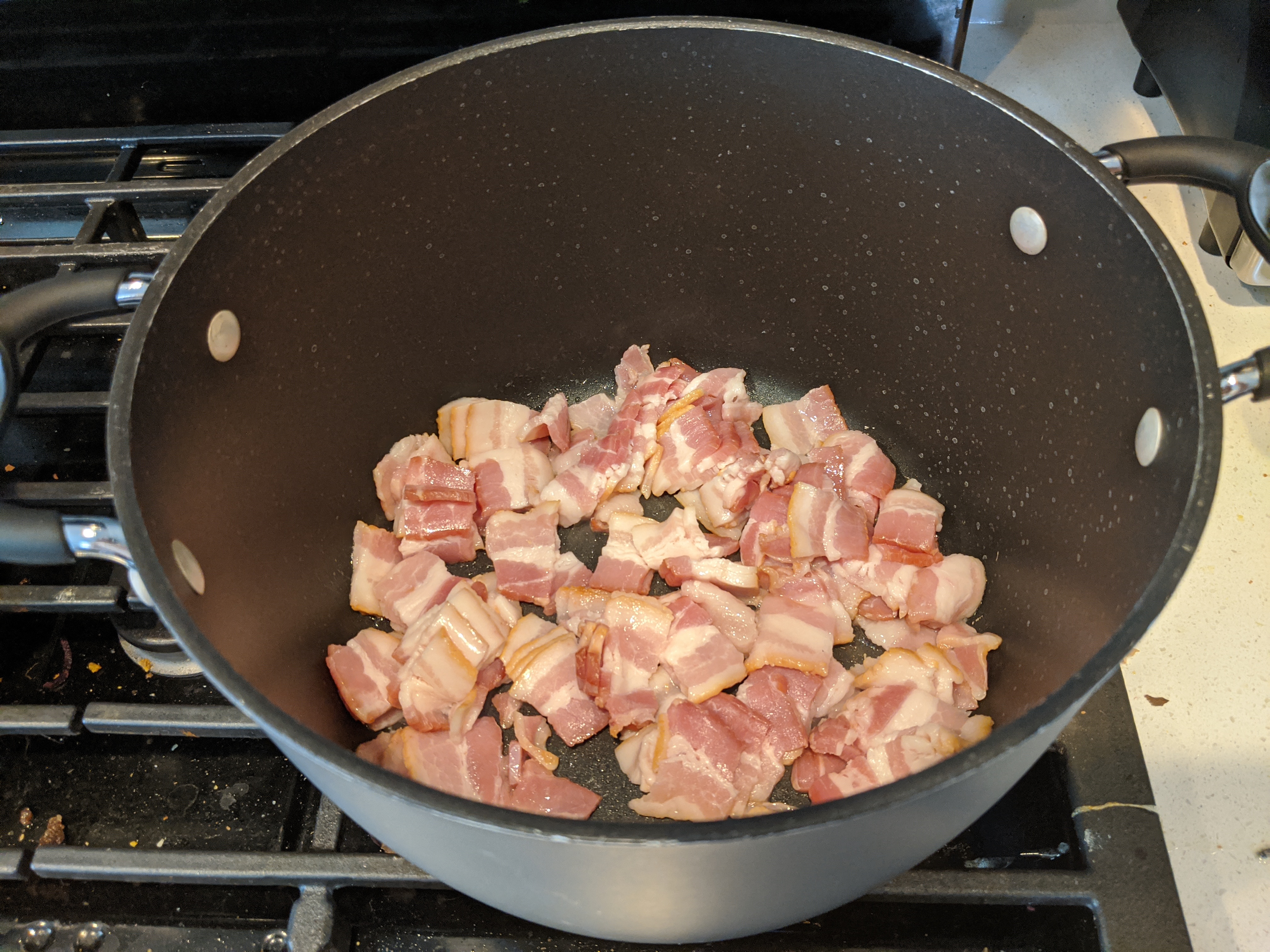 - 1/2 pkg thick cut bacon diced
